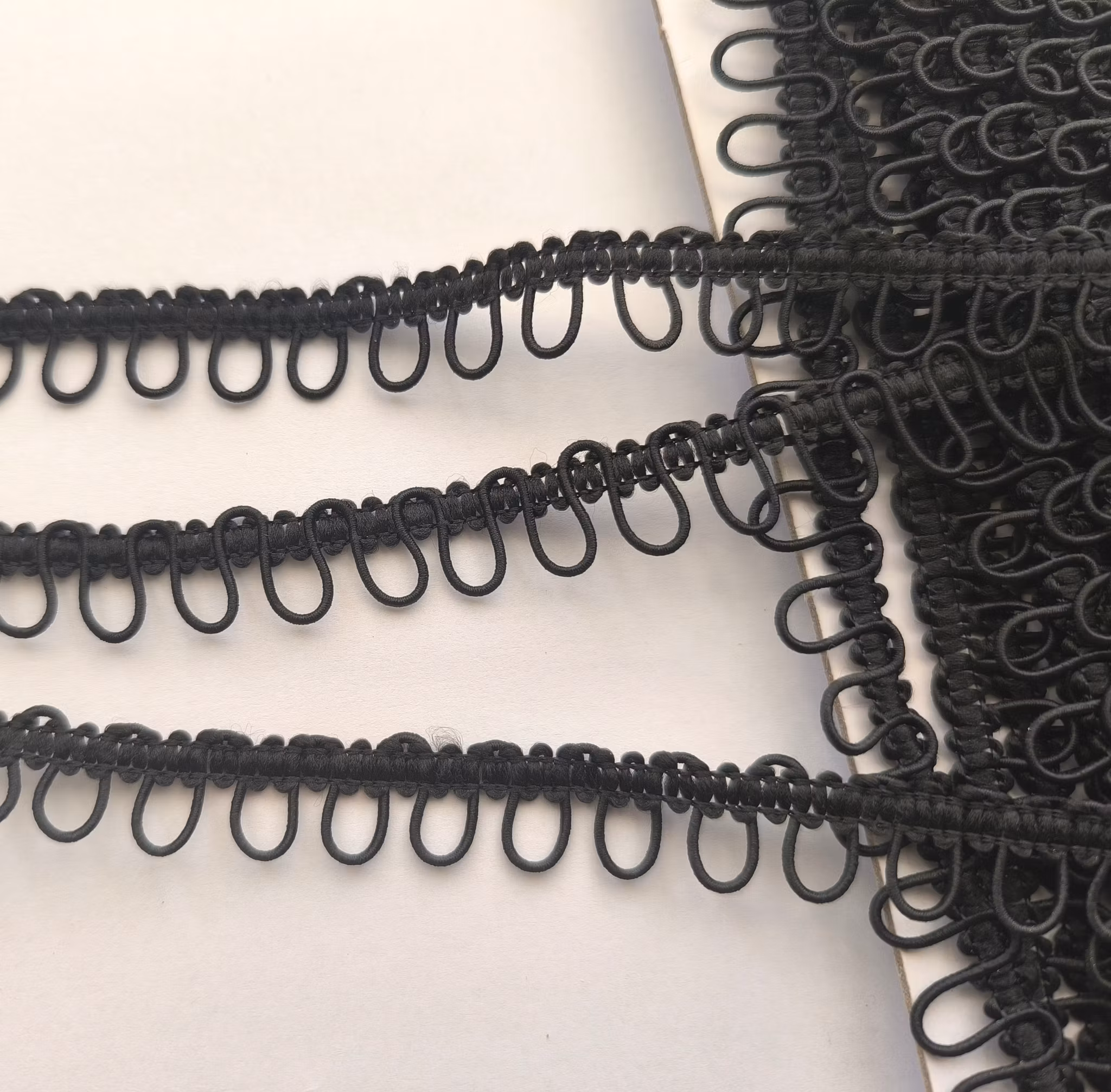 Band med knapphålsöglor. Svart. 15 mm brett. Passar för knappar 8-10 mm