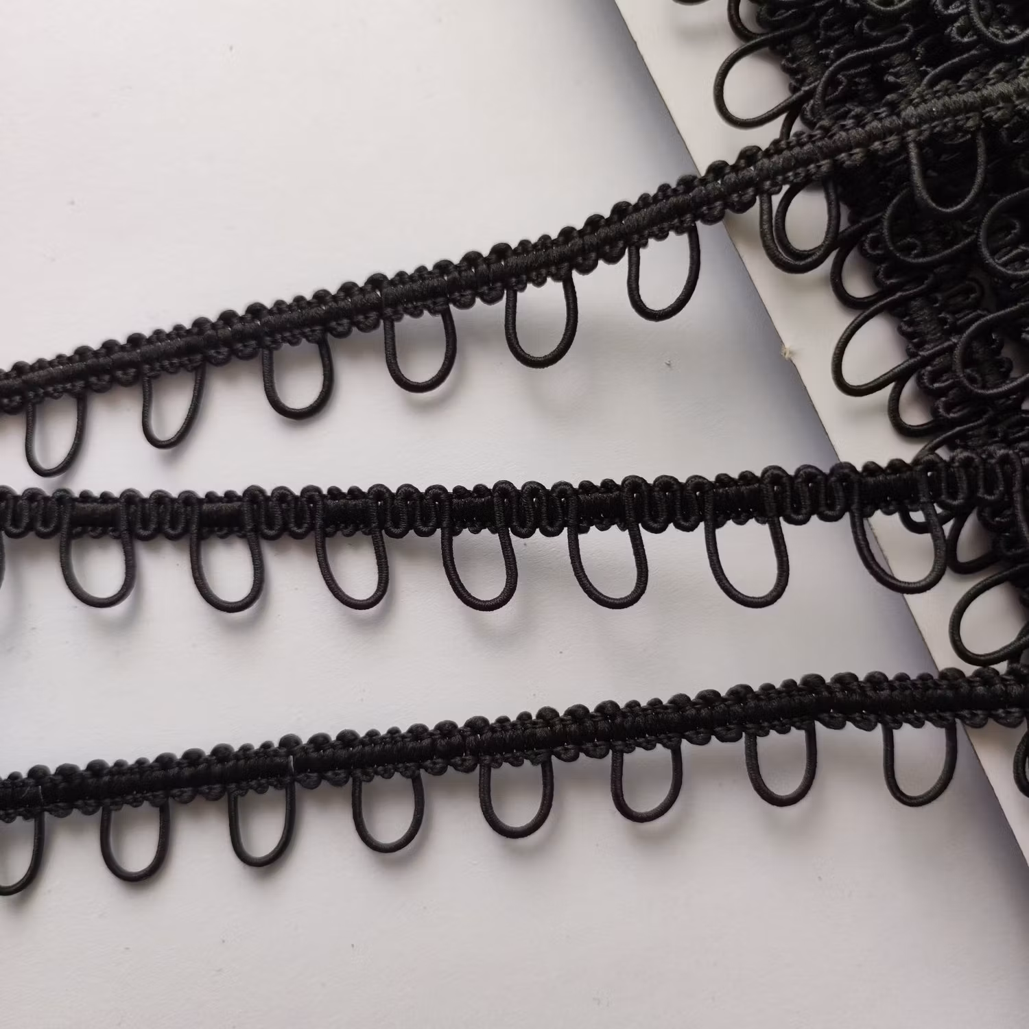 Band med knapphålsöglor. Svart. 15 mm brett. Passar för knappar 10-12 mm