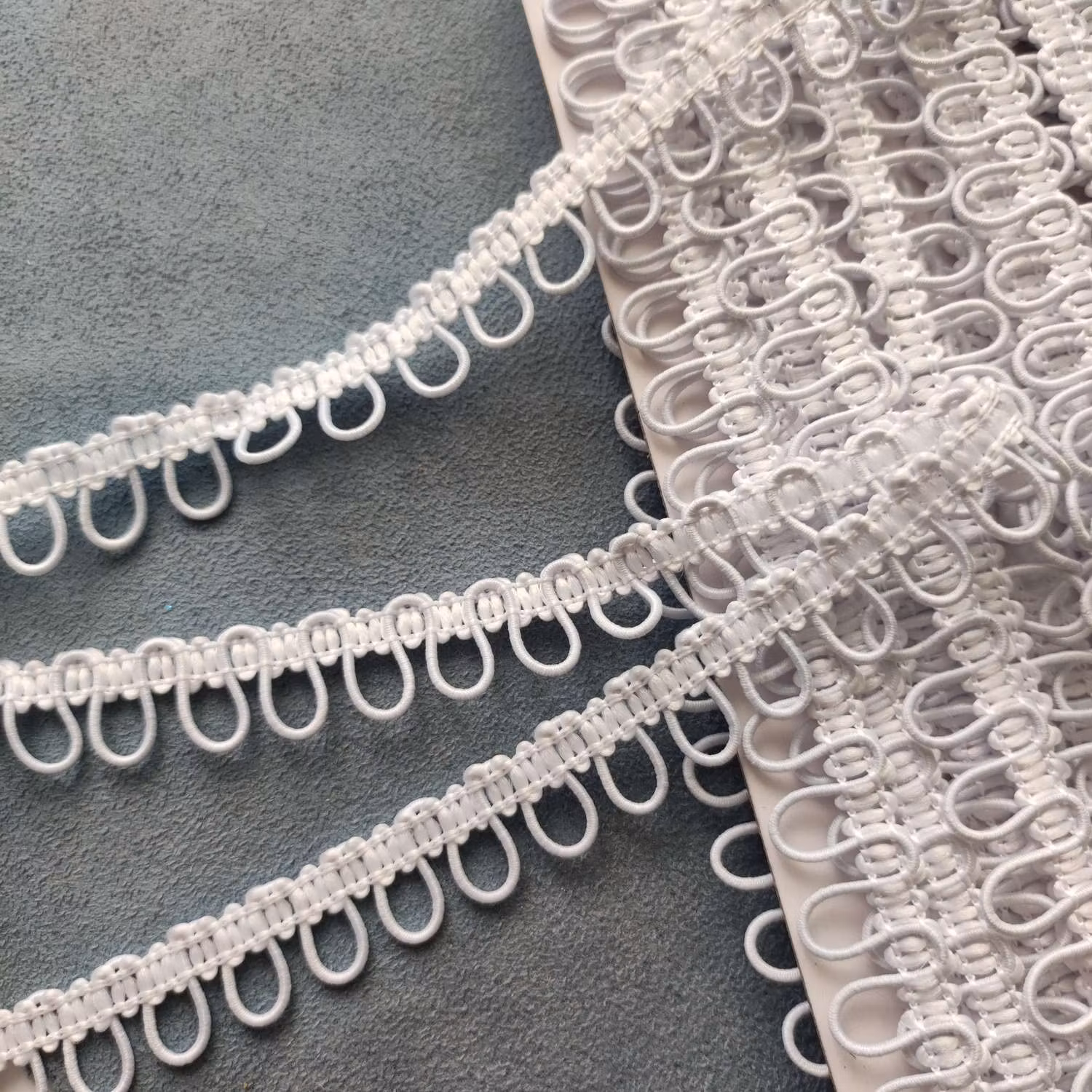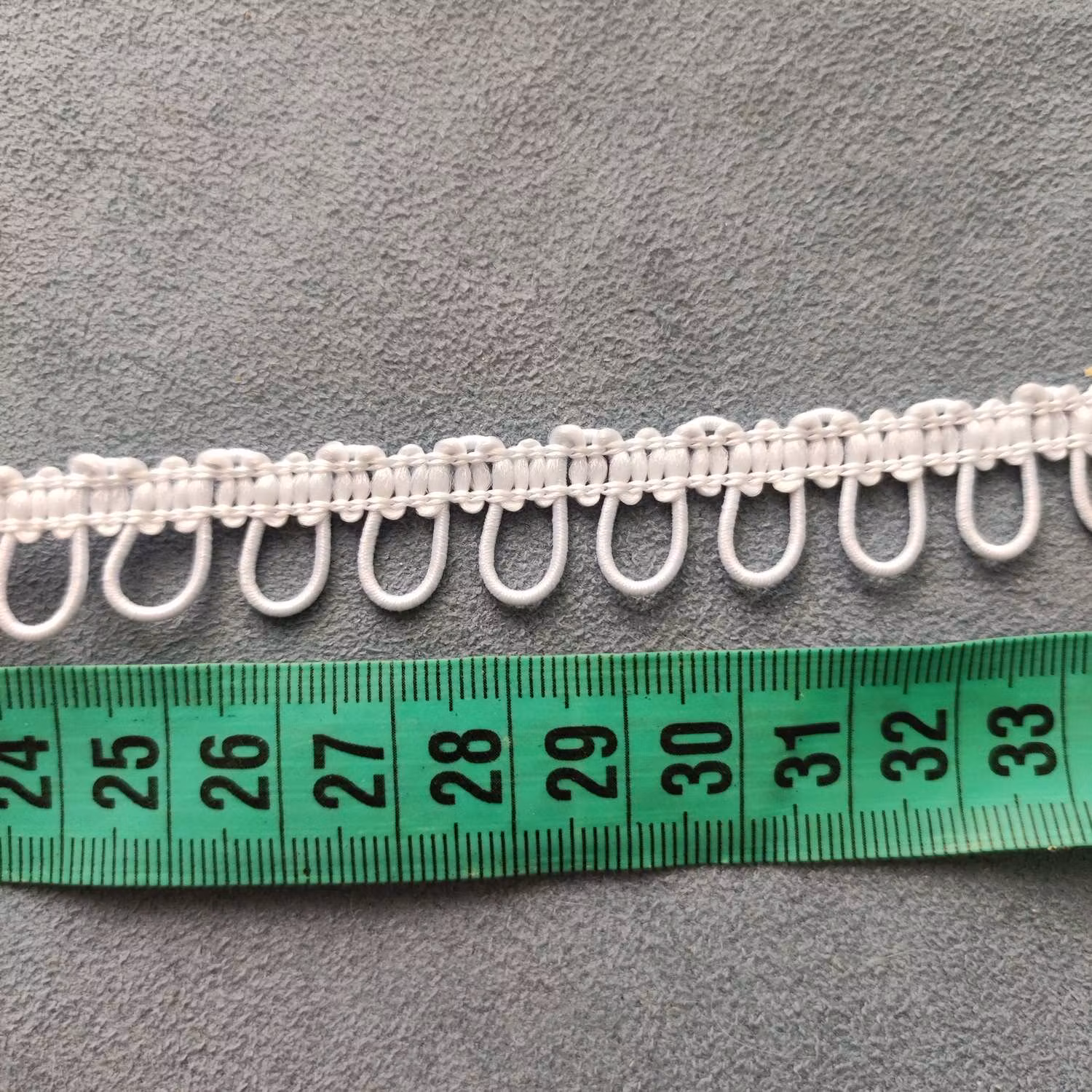 Band med knapphålsöglor. Vitt. 15 mm bred. Passar för knappar 10-12 mm