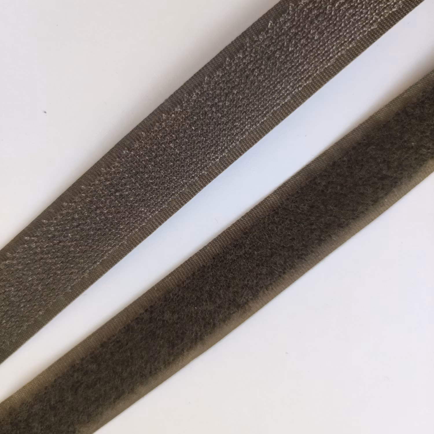 Kardborreband, olivgrönt, 20 mm. Både hona och hane.