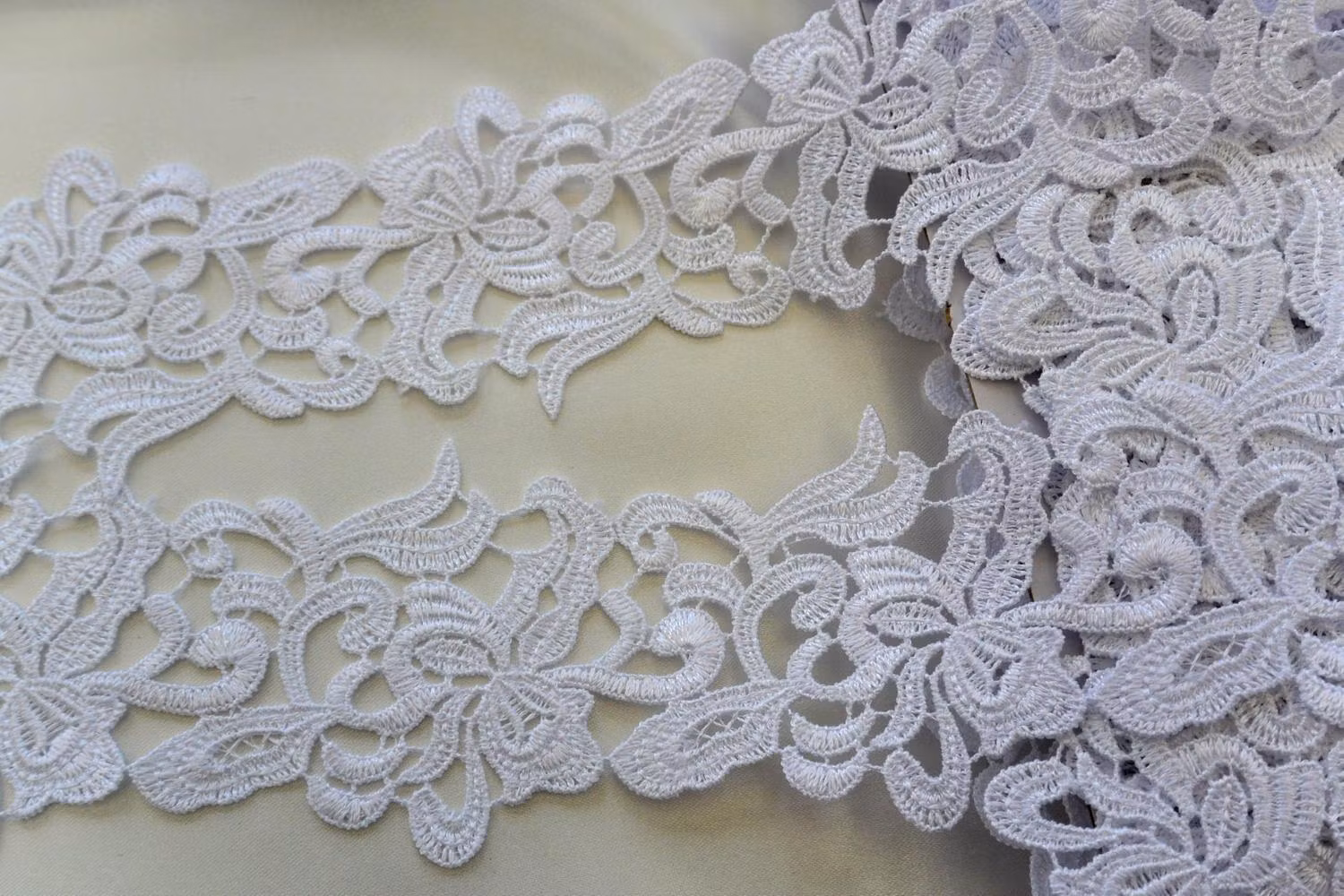 Spets 6,5 cm bred 35 kr I lager. Lägg i korgen Lagersaldo: 6 Produktbeskrivning Recensioner Vit spets. ca 65 mm bred. 100% polyesterPris per meter