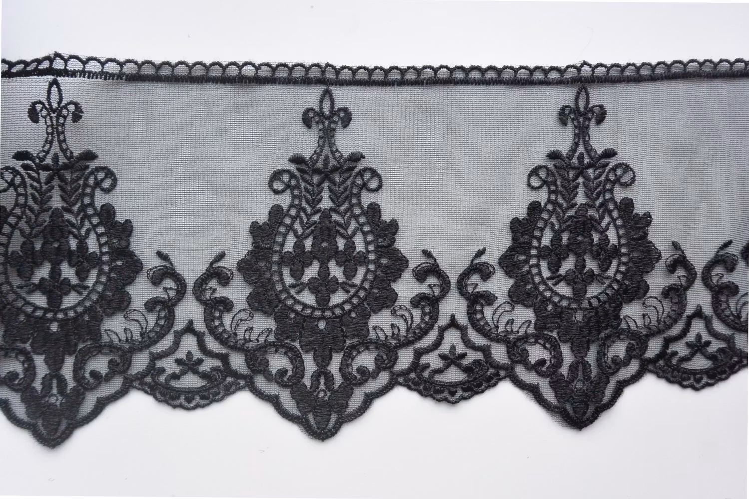 Tyllspets 15 cm 35 kr Produkten är slut i lager :( Produktbeskrivning Recensioner Svart tyllspets. 150 mm bred.Pris per meter.