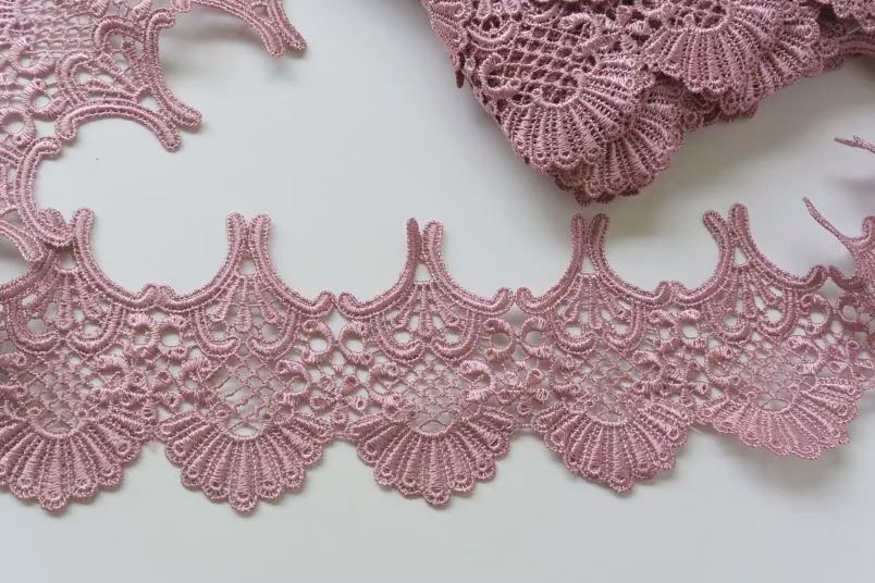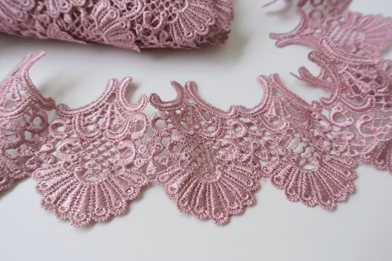 Gammelrosa gepyrspets. 9 cm bred. 76% viskos, 24% bomull
