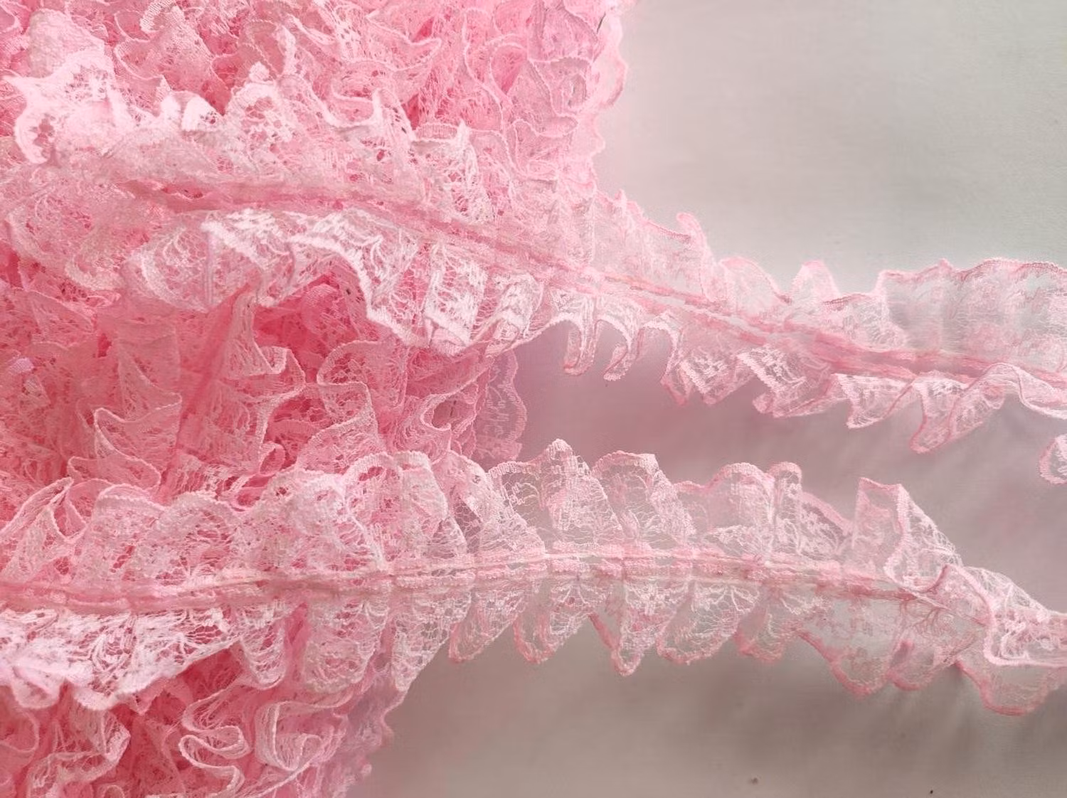 Ljusrosa spets med volang 4 cm 14 kr I lager. Lägg i korgen Lagersaldo: 8 Produktbeskrivning Recensioner Spets i syntet. Ljusrosa. 40 mm bred.Pris per meter