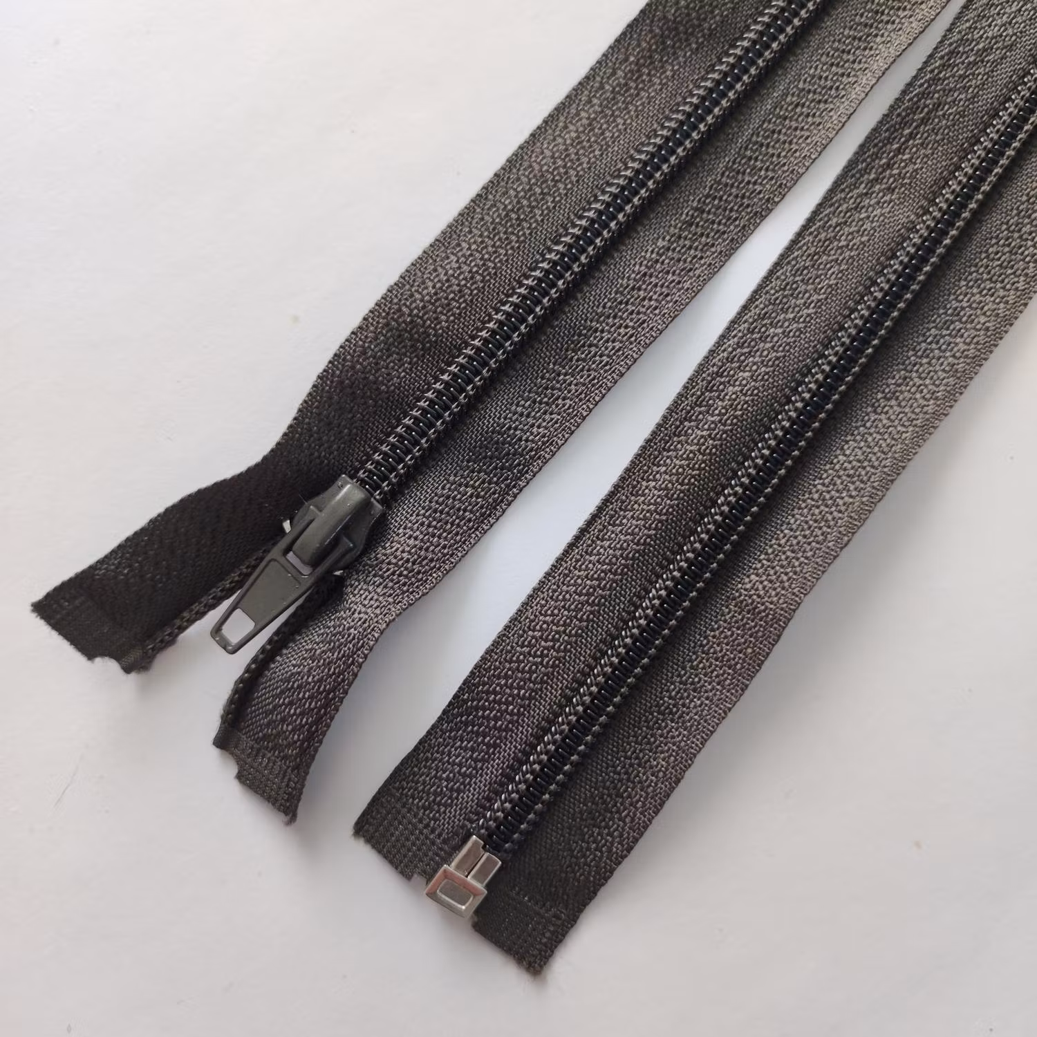 Delbart spiral dragkedja. blixtlås. Brun med gröna nyanser.