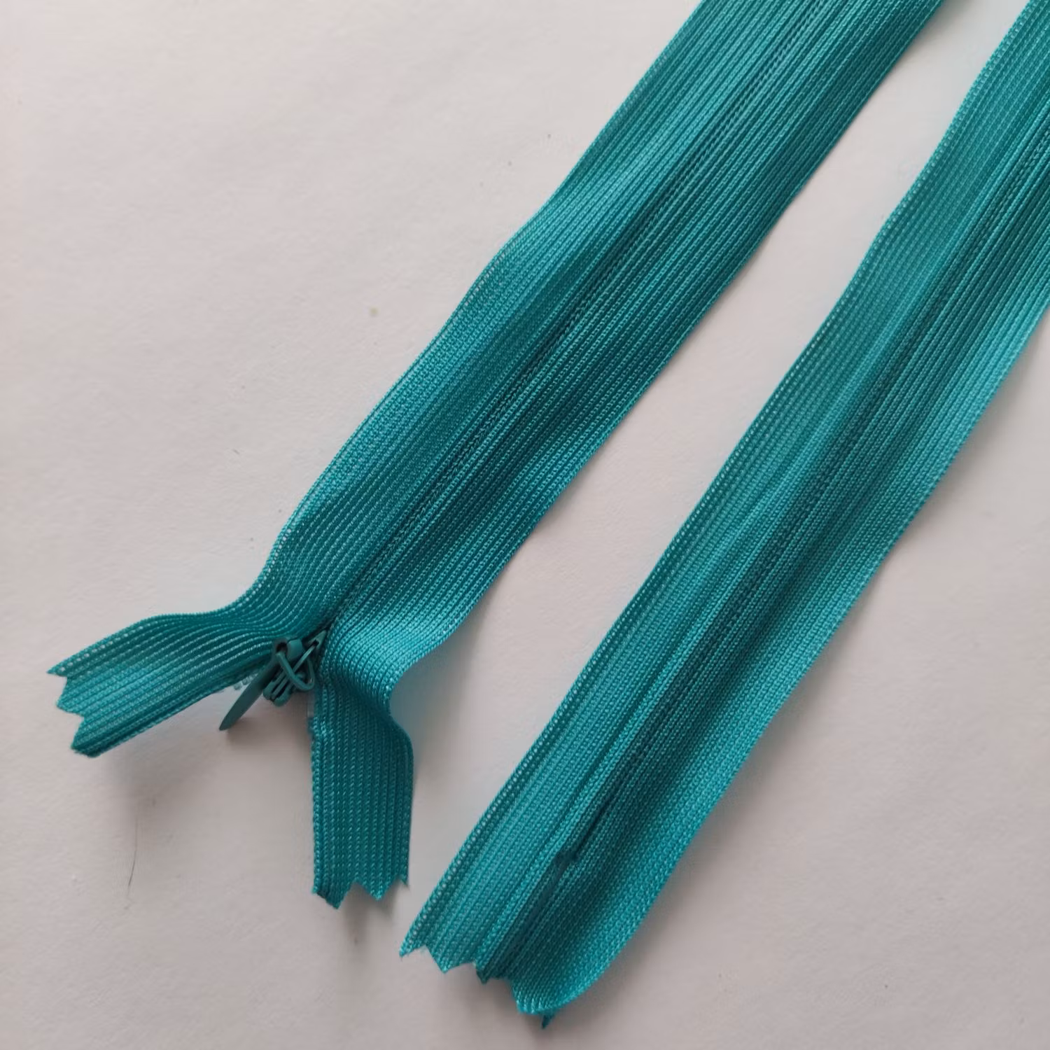 Odelbar osynlig spiral dragkedja, blixtlås. Grönblå.