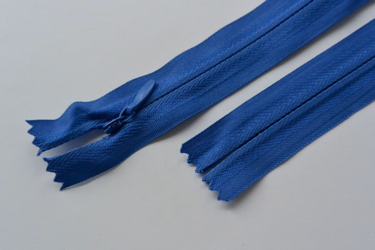 Odelbar osynlig spiral dragkedja, blixtlås. Blå.