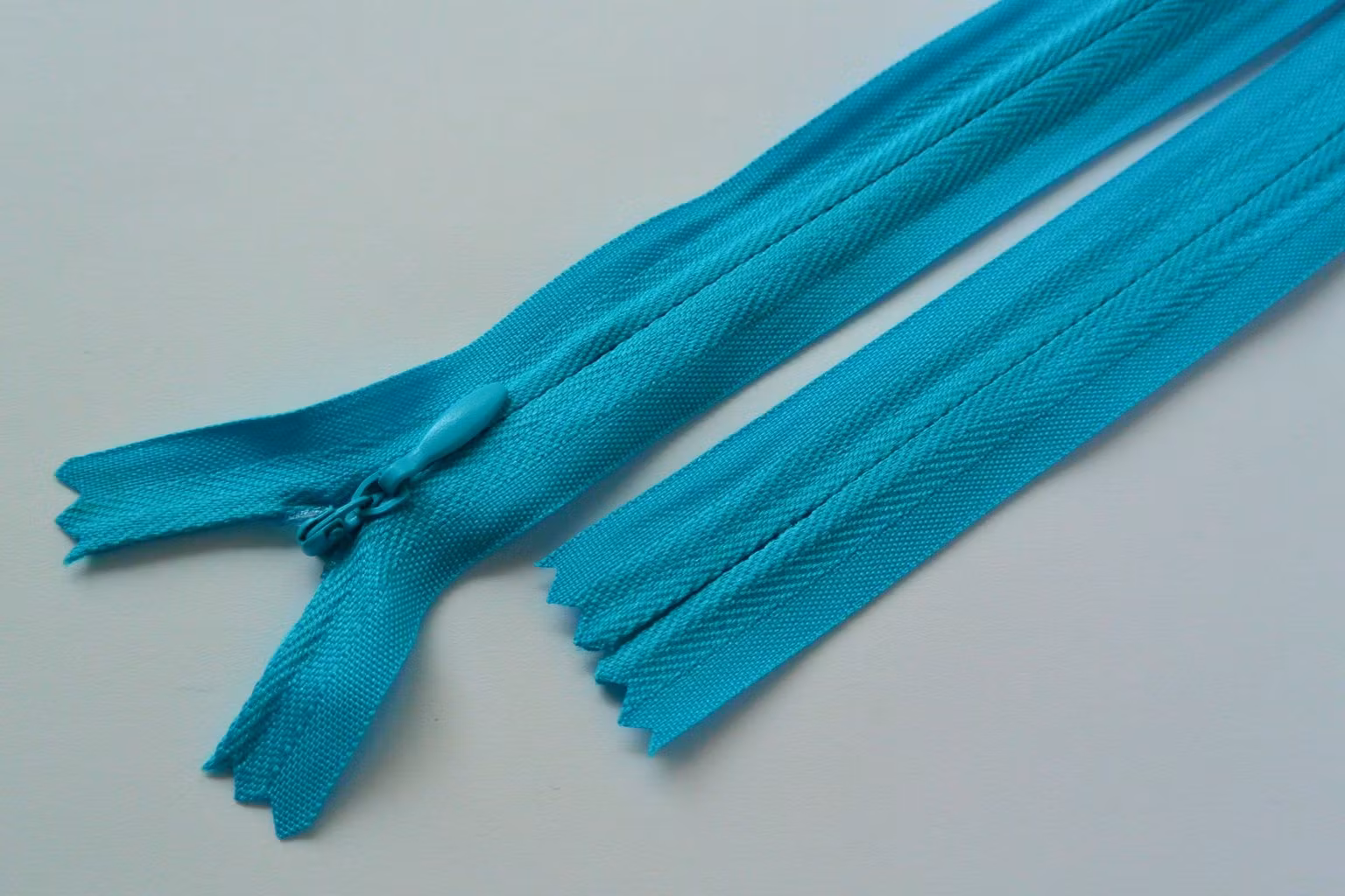 Odelbar osynlig spiral dragkedja, blixtlås. Ljusblå.