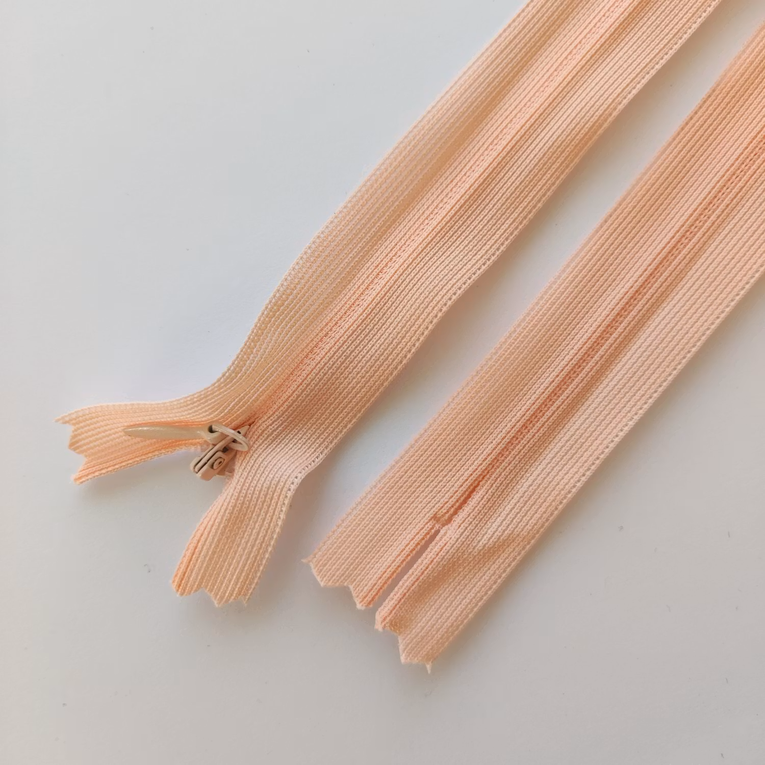 Odelbar osynlig spiral dragkedja, blixtlås. Ljus persikorosa.
