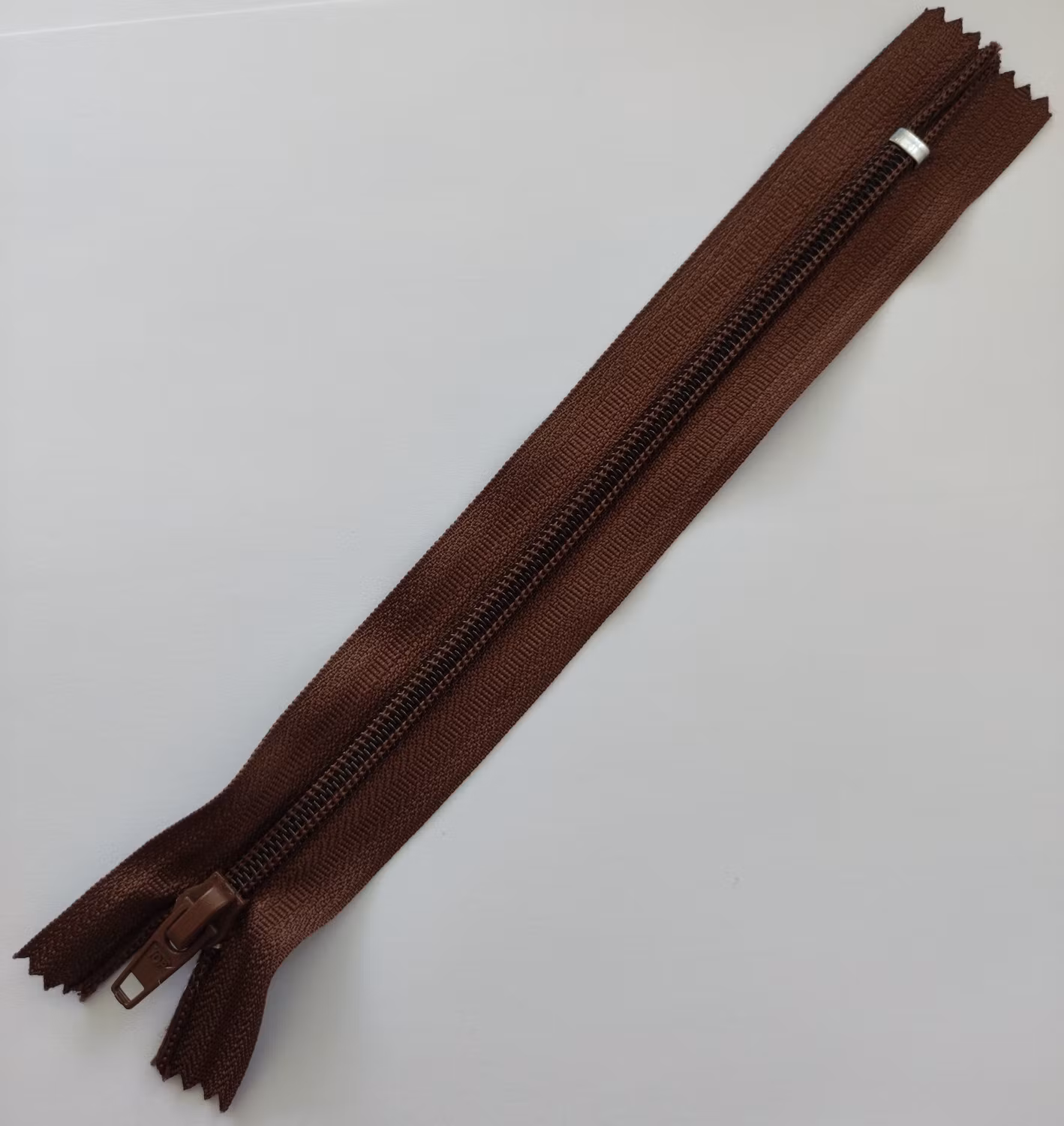 18 cm dragkedja. Brun.