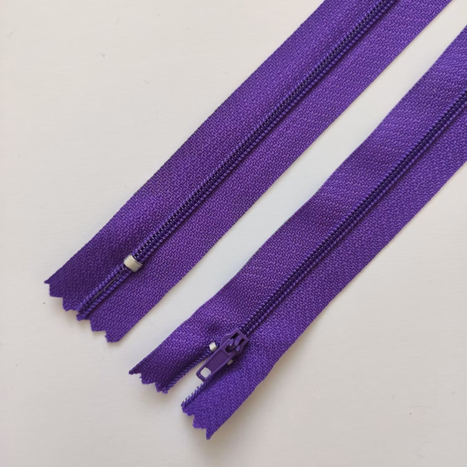 Odelbart spiral blixtlås, dragkedja med pinlock.