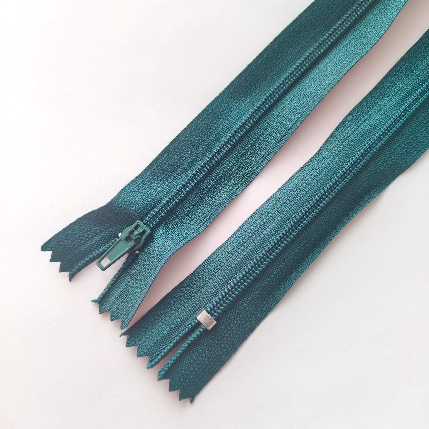 18 cm dragkedja. Mörkgrön.