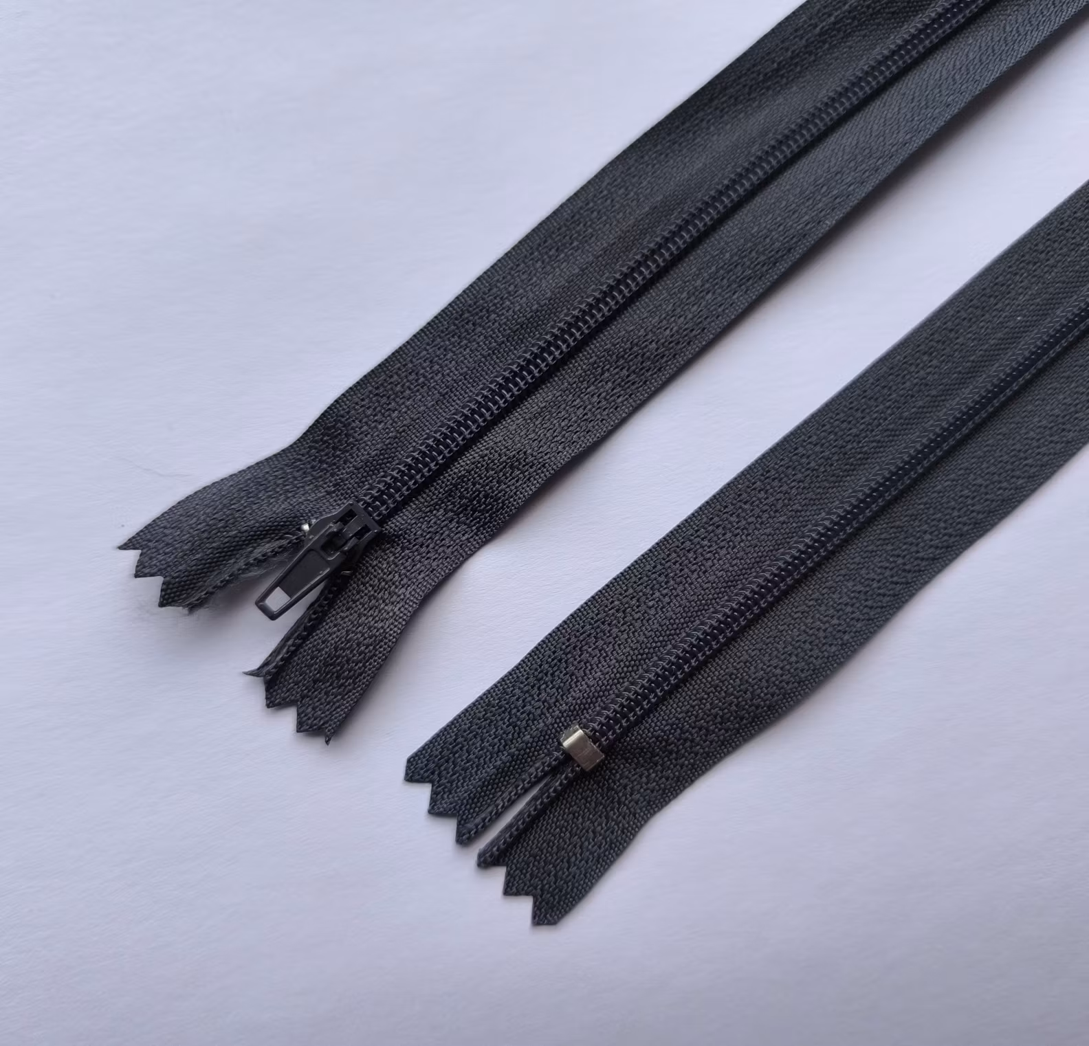 Odelbart spiral blixtlås, dragkedja med pinlock.