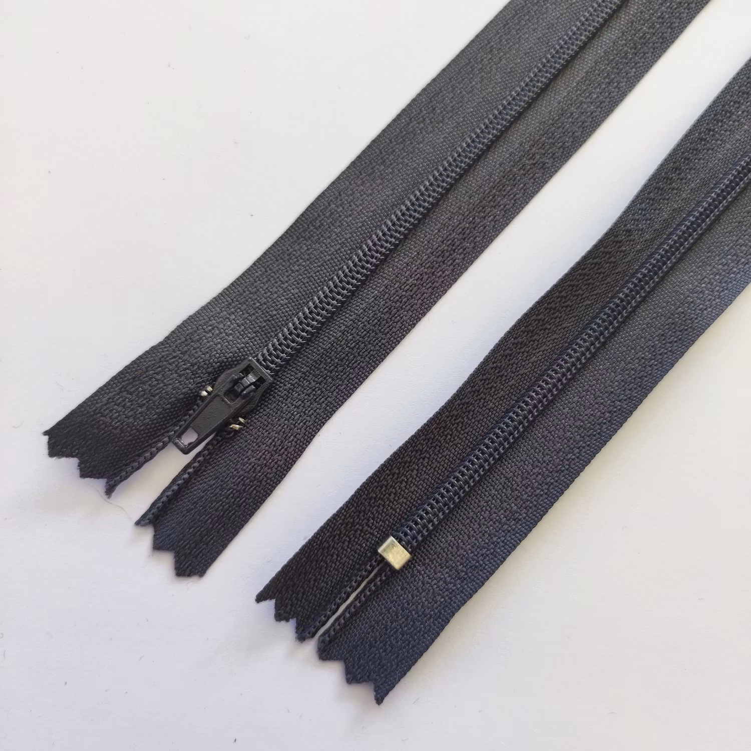 Odelbart spiral blixtlås, dragkedja med pinlock.