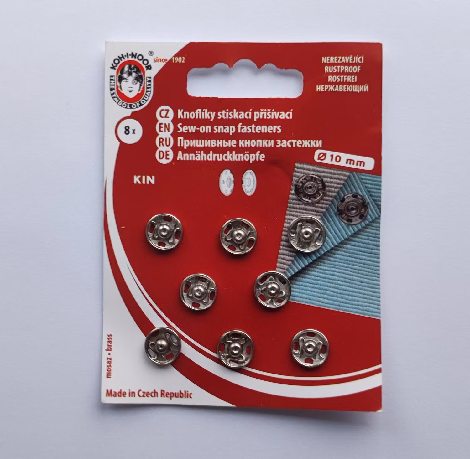 Rostfria tryckknappar att sy fast av metall, 10 mm. Förp med 8 st.