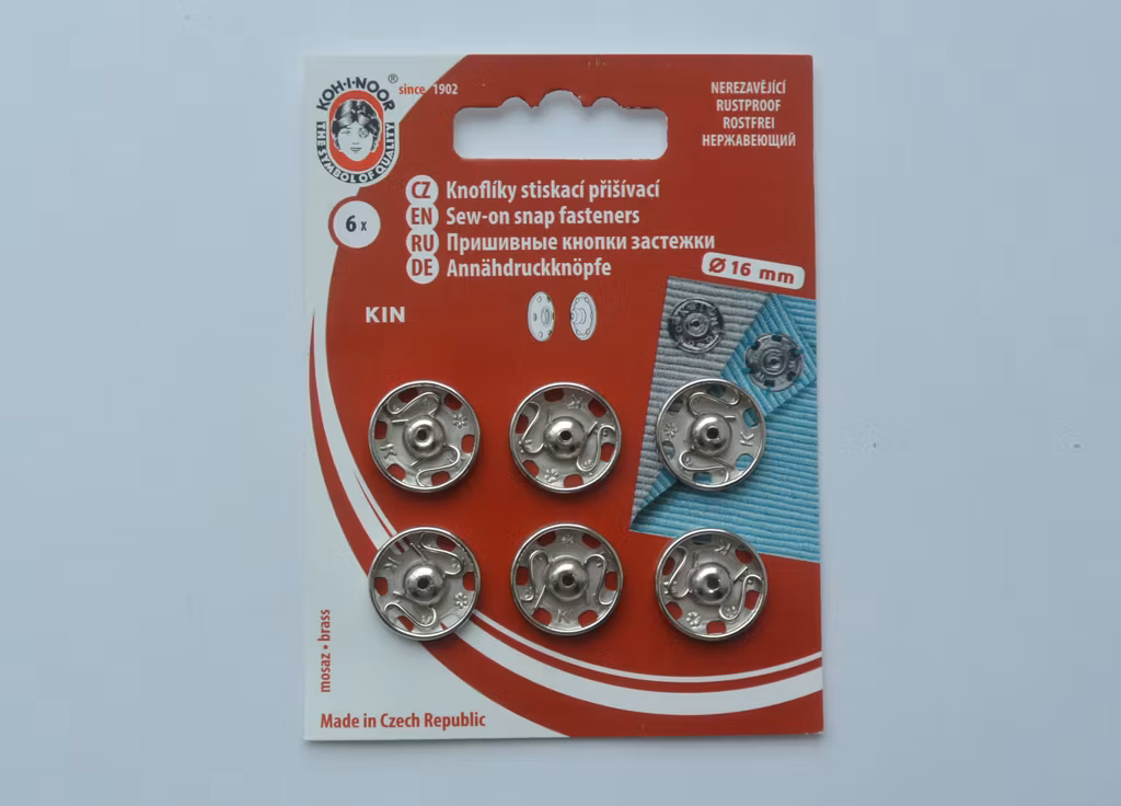 Rostfria tryckknappar att sy fast av metall, 16 mm. Förp med 6 st.