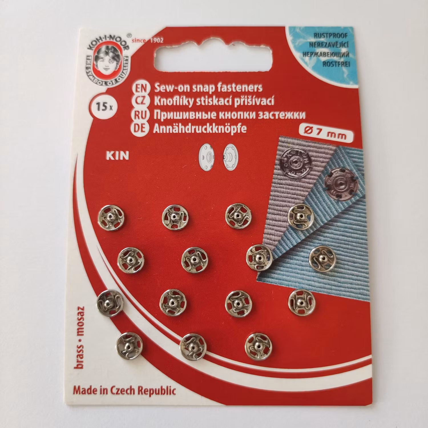 Rostfria tryckknappar att sy fast av metall, 7 mm. Förp med 15 st.