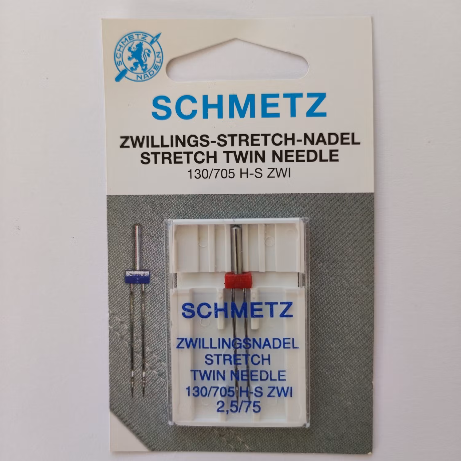 Tvillingnål SCHMETZ, stretch, stl.75. 2,5mm mellan nålarna, 1 st